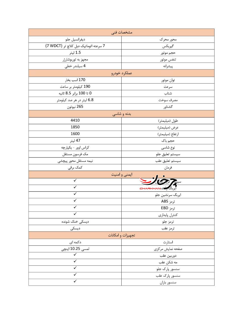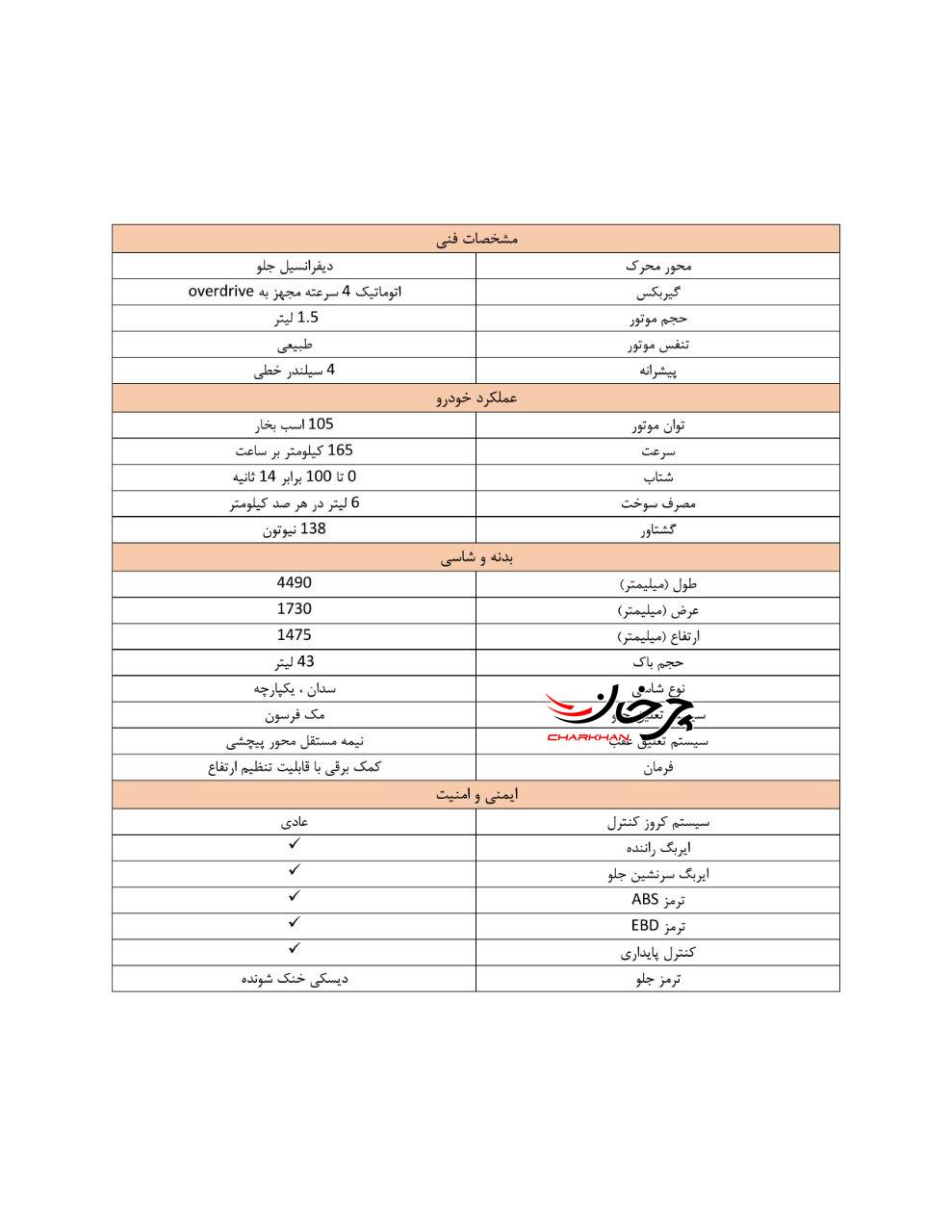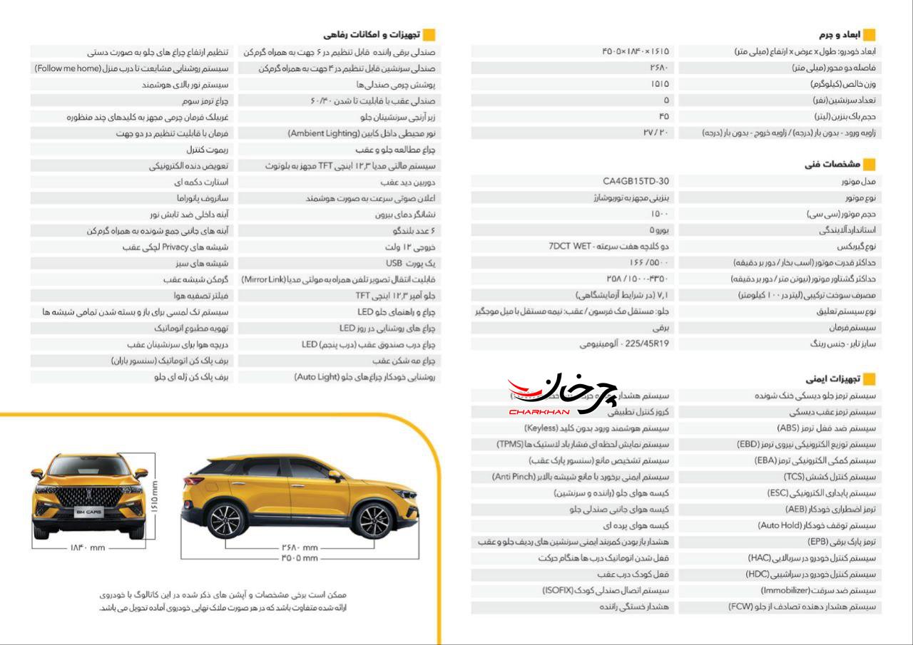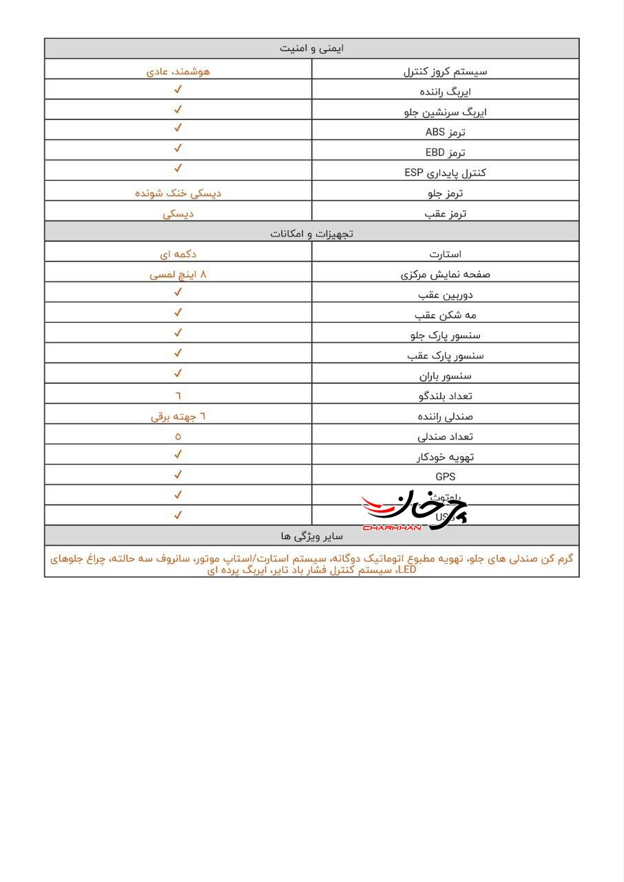 مشخصات خودروهای فوق، براساس کاتالوگ منتشر شده وزارت صمت به شرح ذیل میباشد: