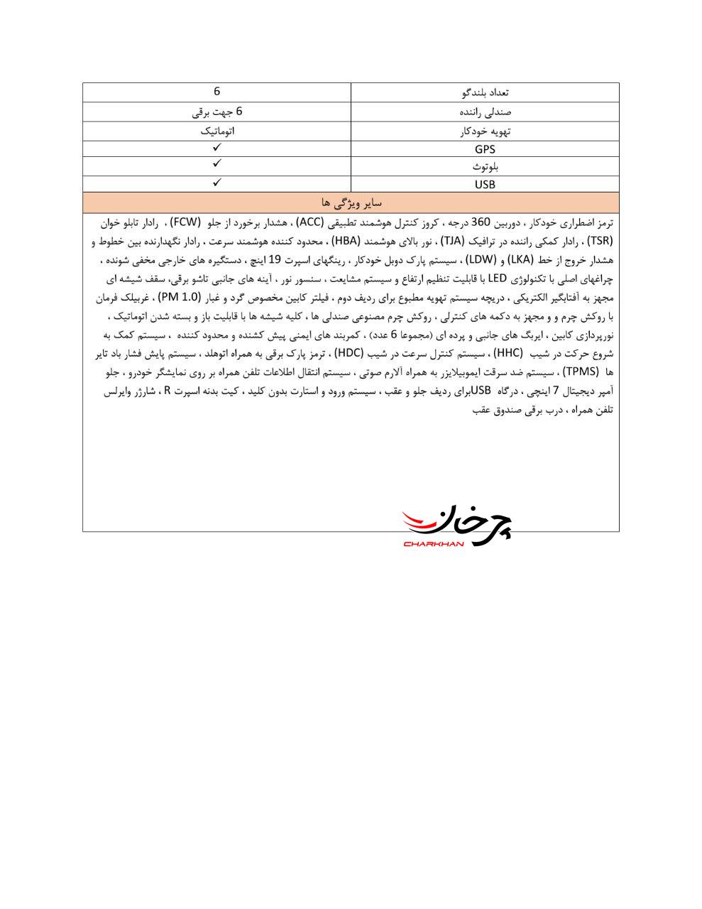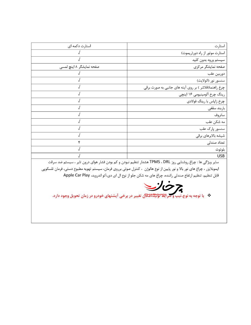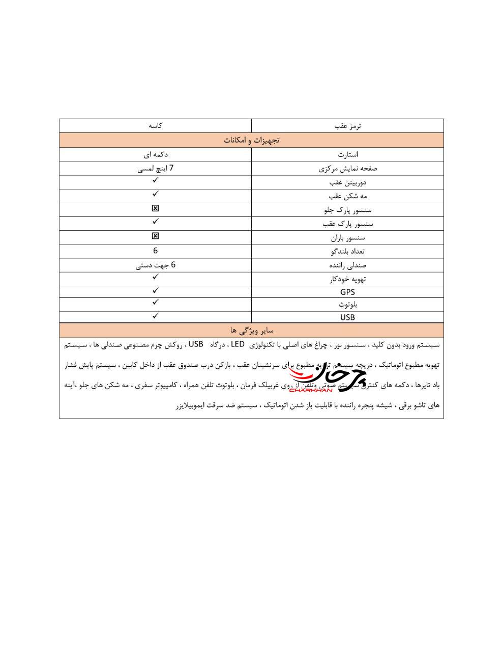 مشخصات خودروهای فوق، براساس کاتالوگ منتشر شده وزارت صمت به شرح ذیل میباشد: