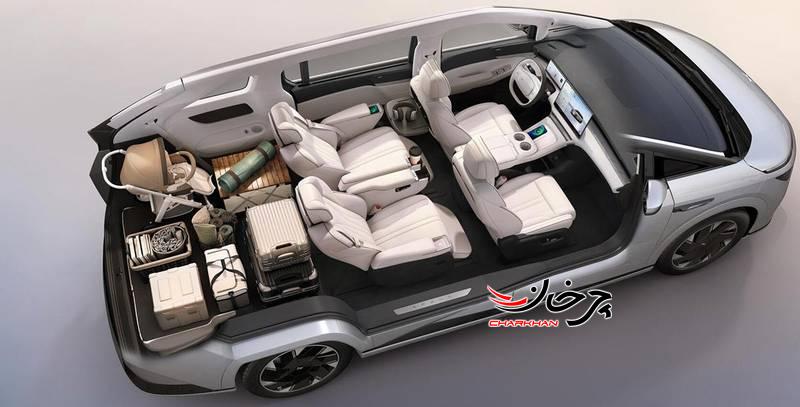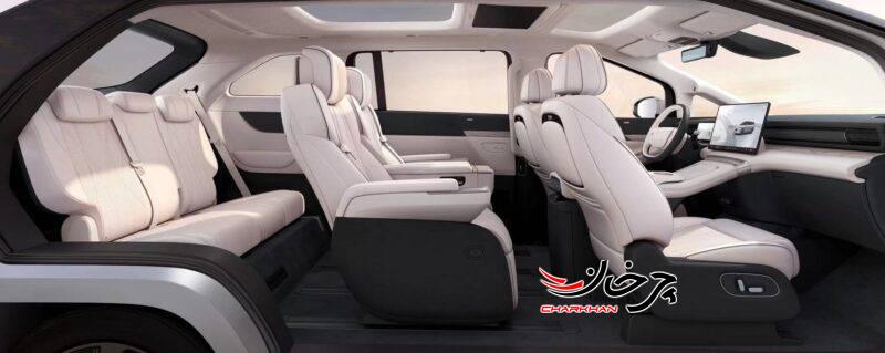 در کابین این خودروی 7 نفره با سه ردیف صندلی با طراحی 2+2+3 روبرو هستیم. گزینه‌های باتری شامل یک بسته 84.5 کیلووات ساعتی لیتیوم آهن فسفات (LFP) از Eve Energy و یک بسته 101.5 کیلووات ساعتی سه‌تایی از NMC هستند که از شارژ 800 ولتی پشتیبانی می‌کند و می‌توانند تنها در 10 دقیقه برد 300 کیلومتری را ارائه کنند.