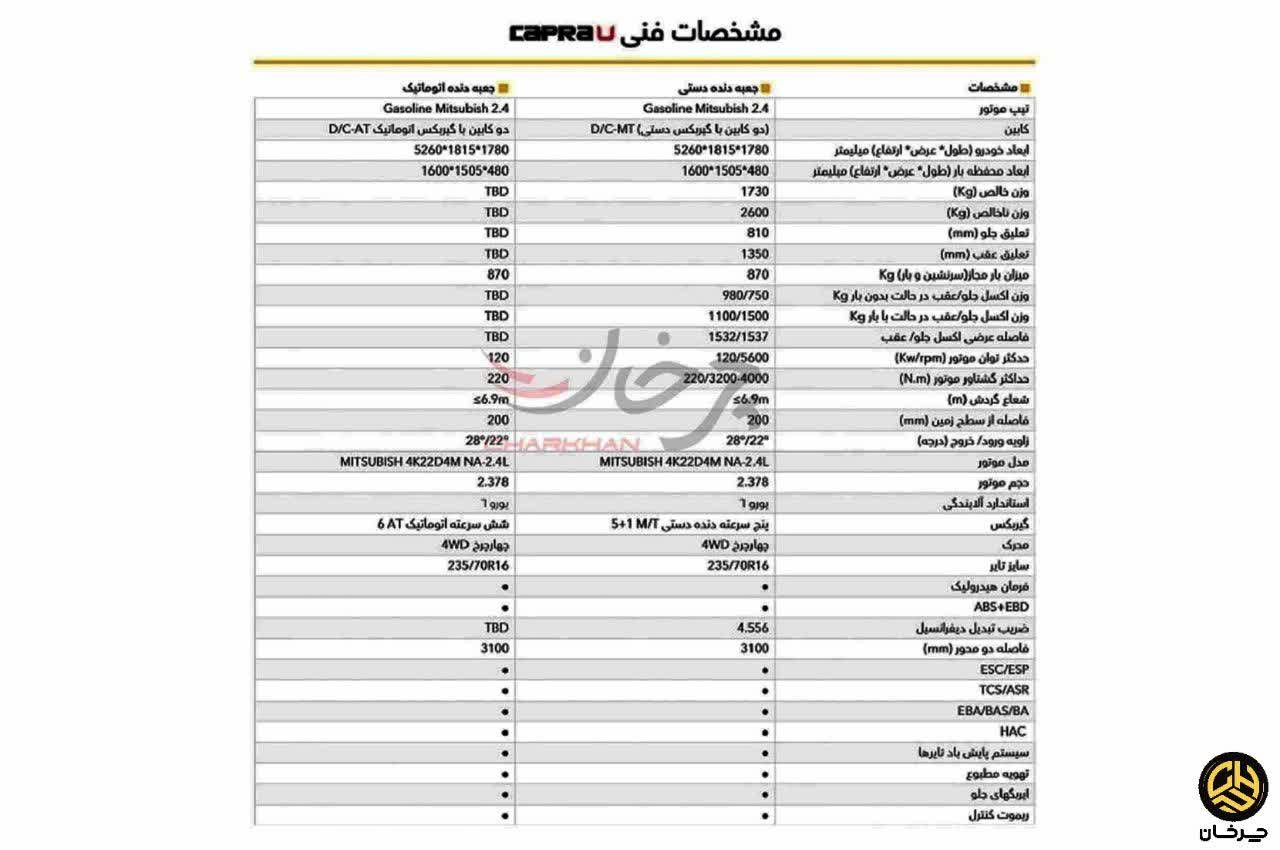 مشخصات CAPRA U