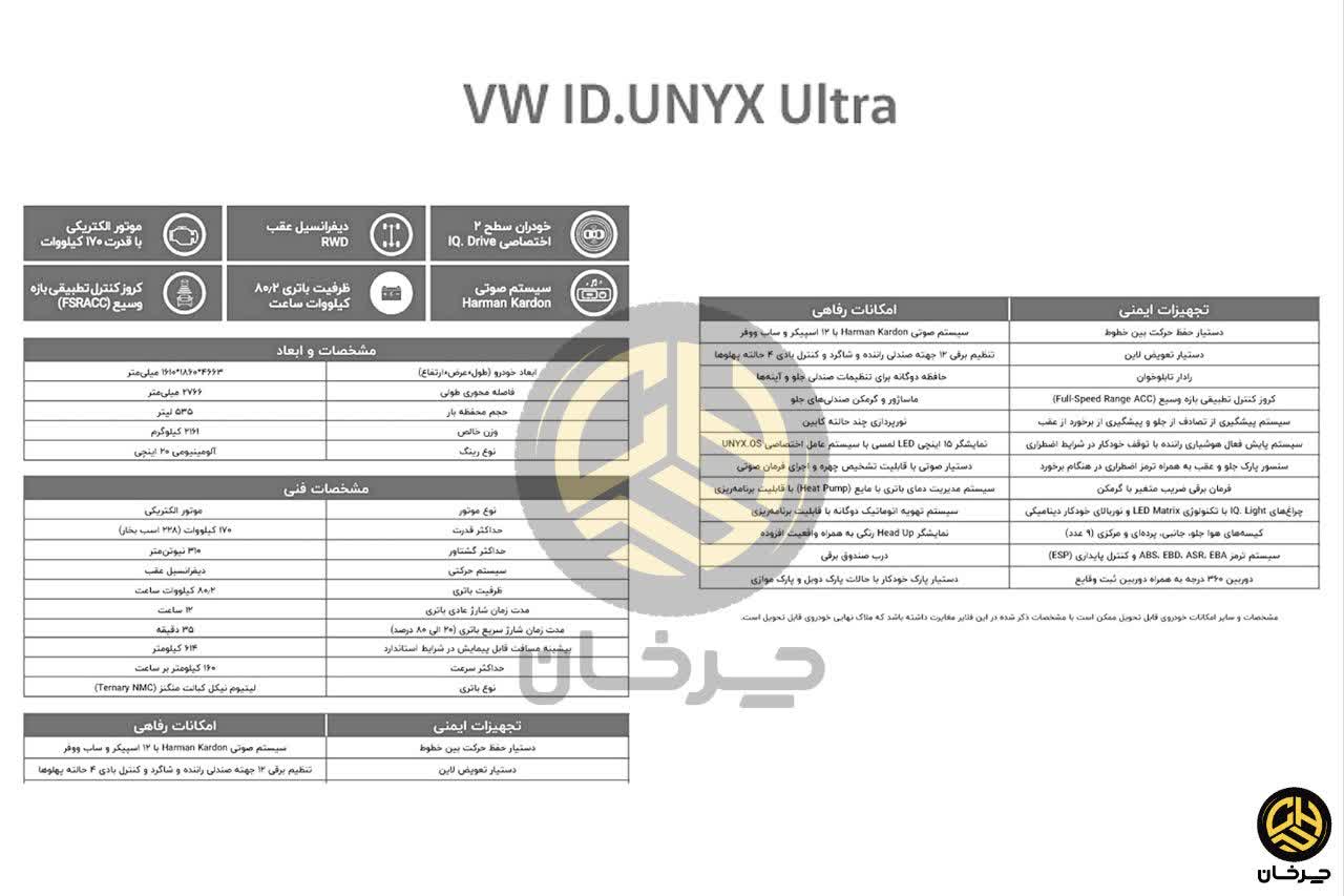 – ظرفیت باتری فولکس واگن ID.UNYX در تیپ الترا چقدر است؟