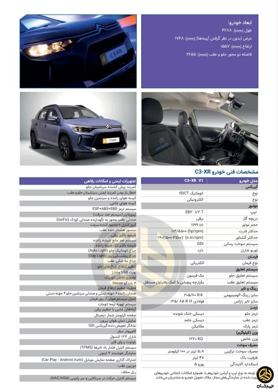 مشخصات و کاتالوگ رسمی کراس اوور سیتروئن C3-XR محصول جدید گروه خودروسازی سایپا منتشر شد.