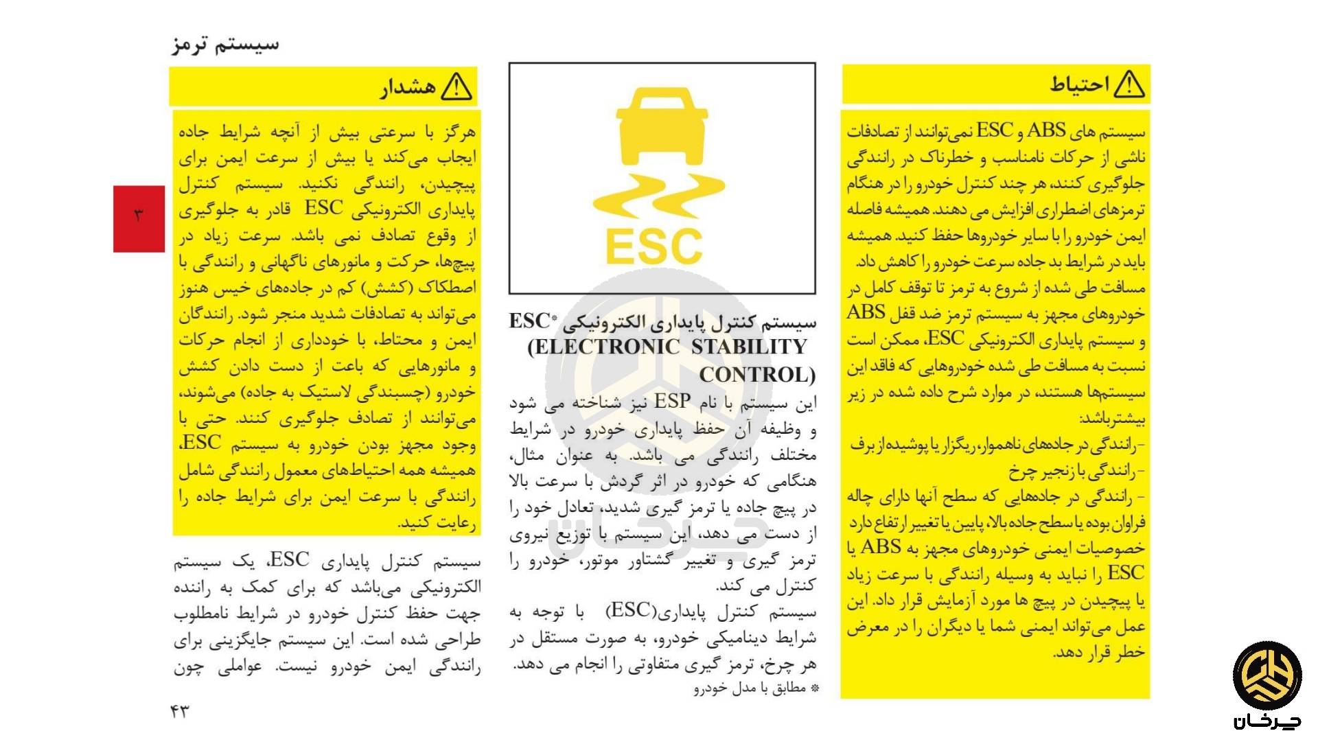 - سامانه کنترل پایداری (ESC)