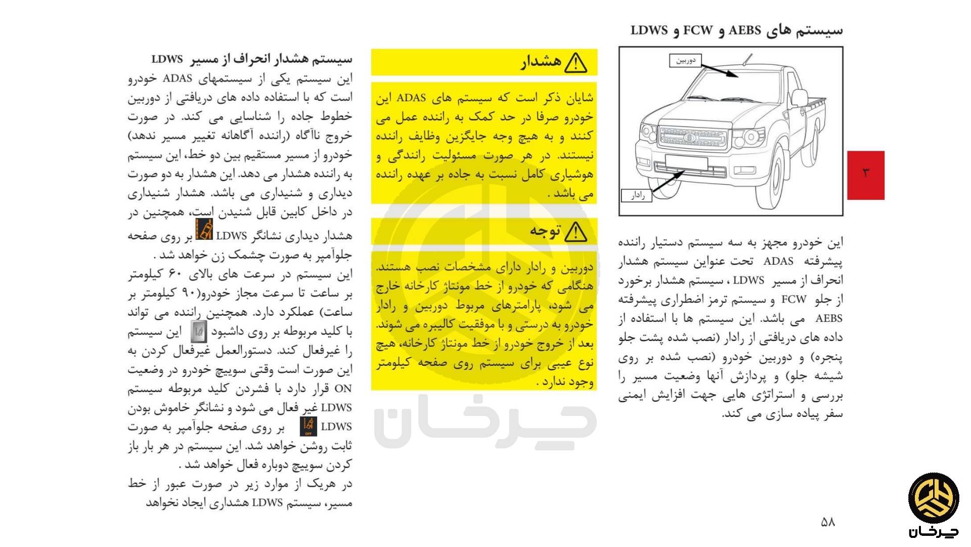 - رادار هشدار خروج از خط (LDW)